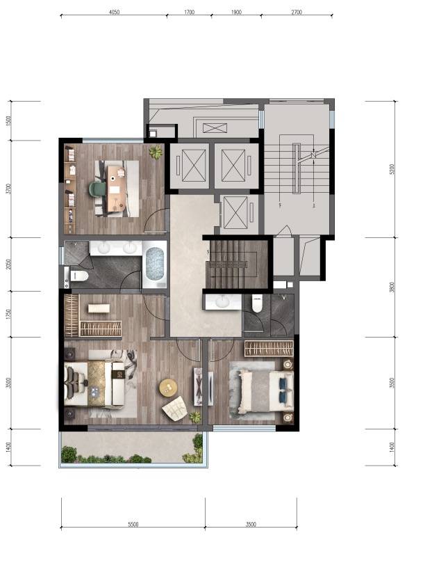 ·全明三卧设计,约41㎡观景套房主卧,带约5.5米南向阳台