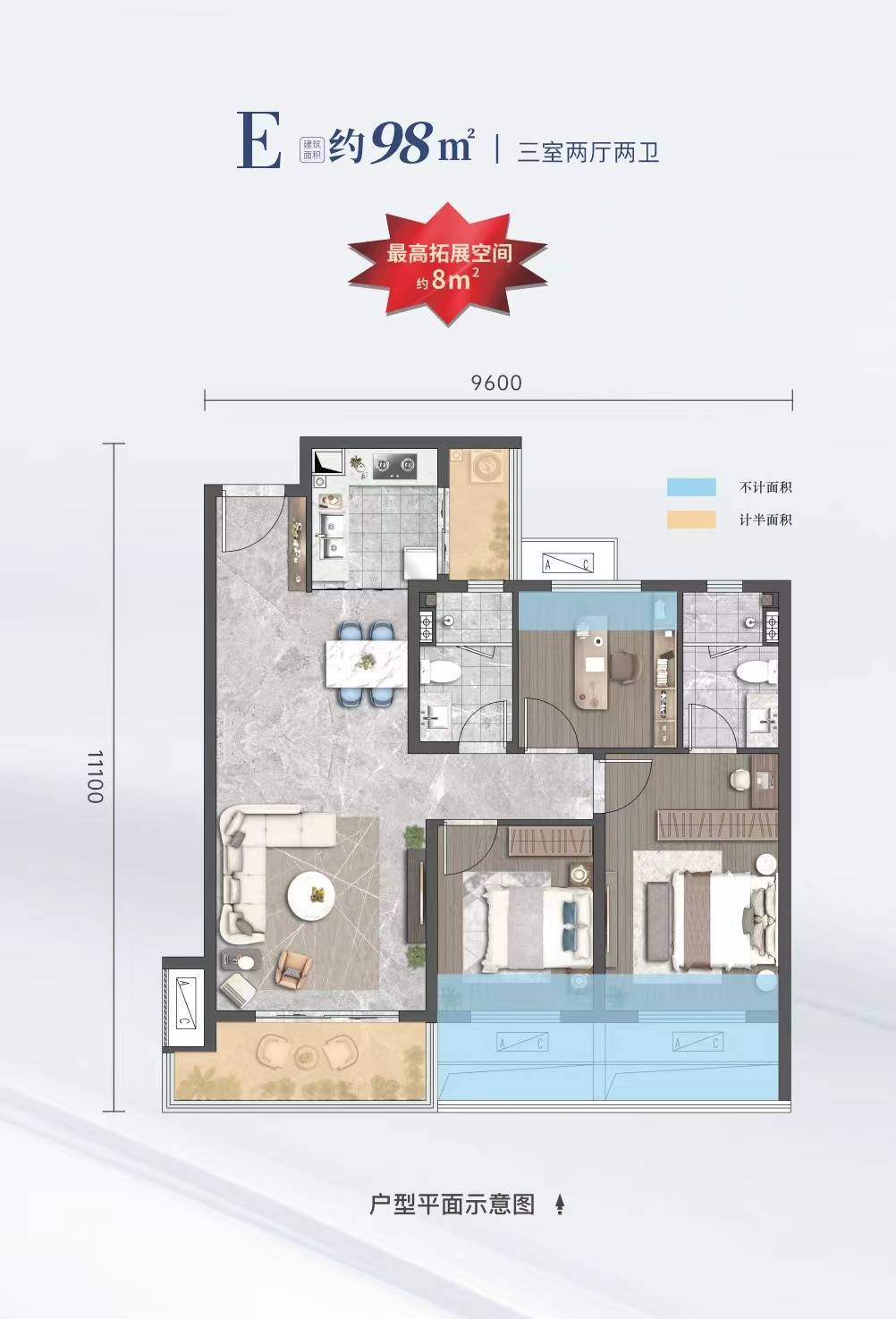 98㎡赠送约8㎡