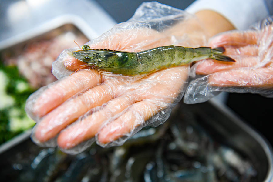 “以油爆大虾为例,我们都是当天早上采购的最新鲜食材。”王坤掂量着手中那盆活蹦乱跳的大明虾。只见他起个油锅,葱姜蒜就位,在大勺翻腾之间,大虾由亮黑变金黄,酱油一上,便鲜香袭人。
