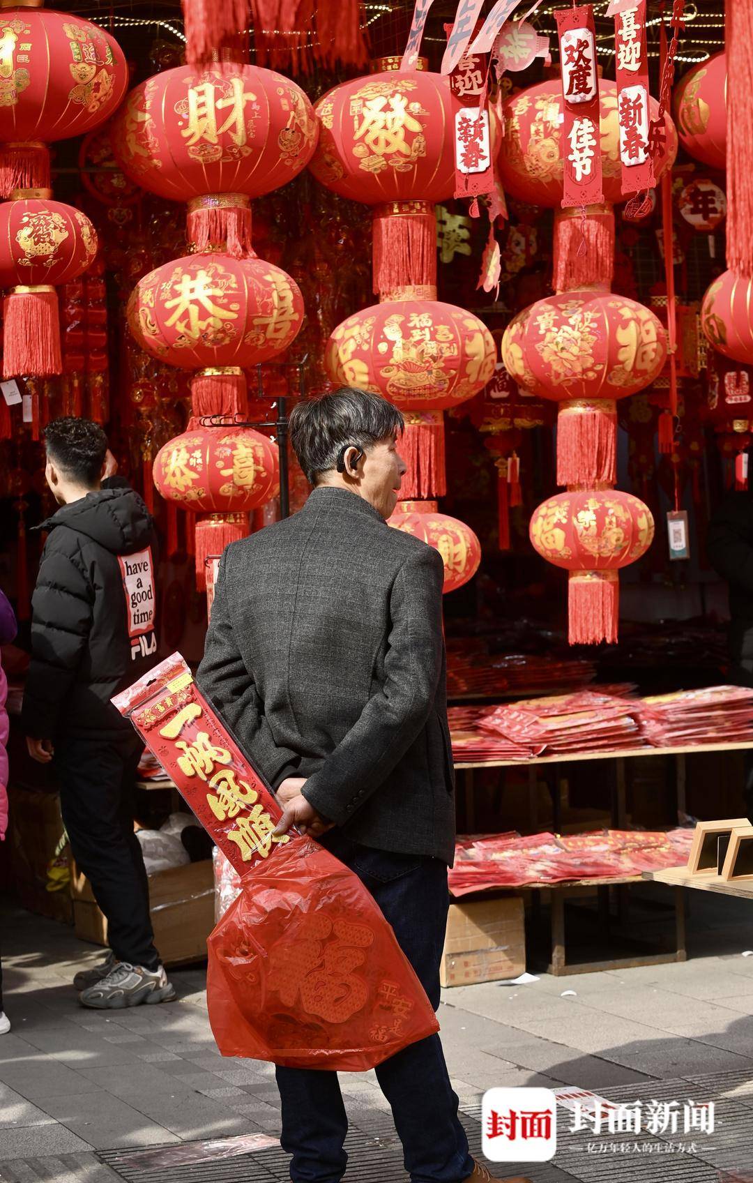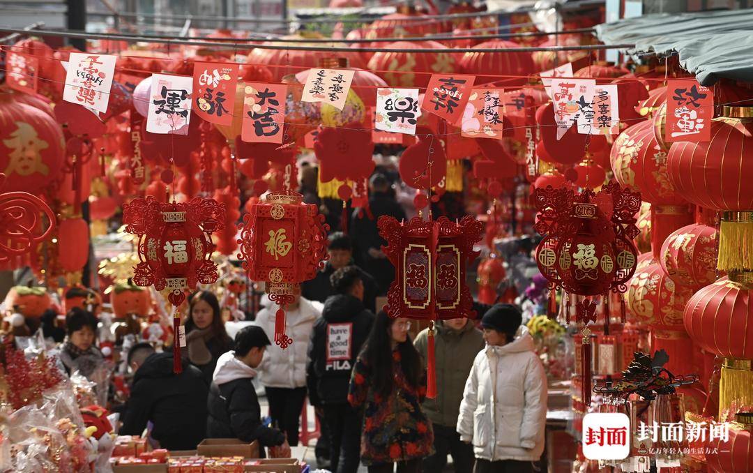 新春将至,成都荷花池市场年味饰品生意红红火火。
