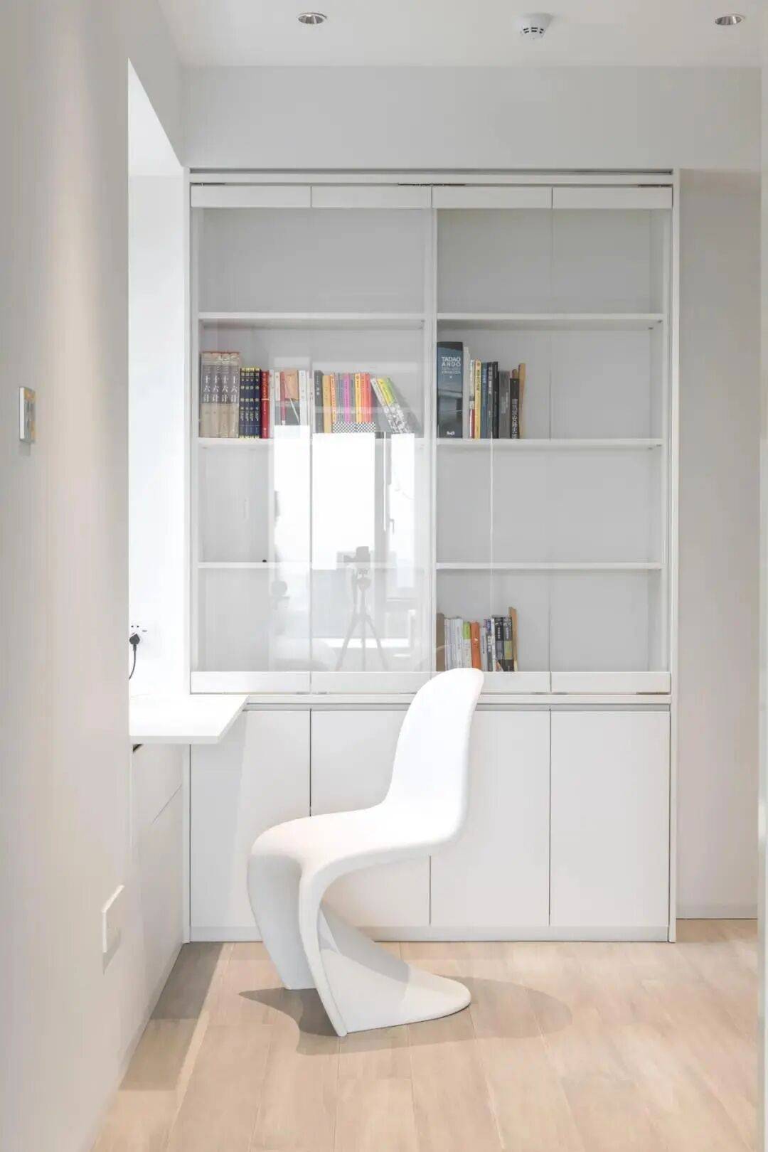 因为现在的极简柜子太妙了,一门到顶的白色柜门,视觉上和墙面顶面几乎融为了一体,丝毫没有压抑感。