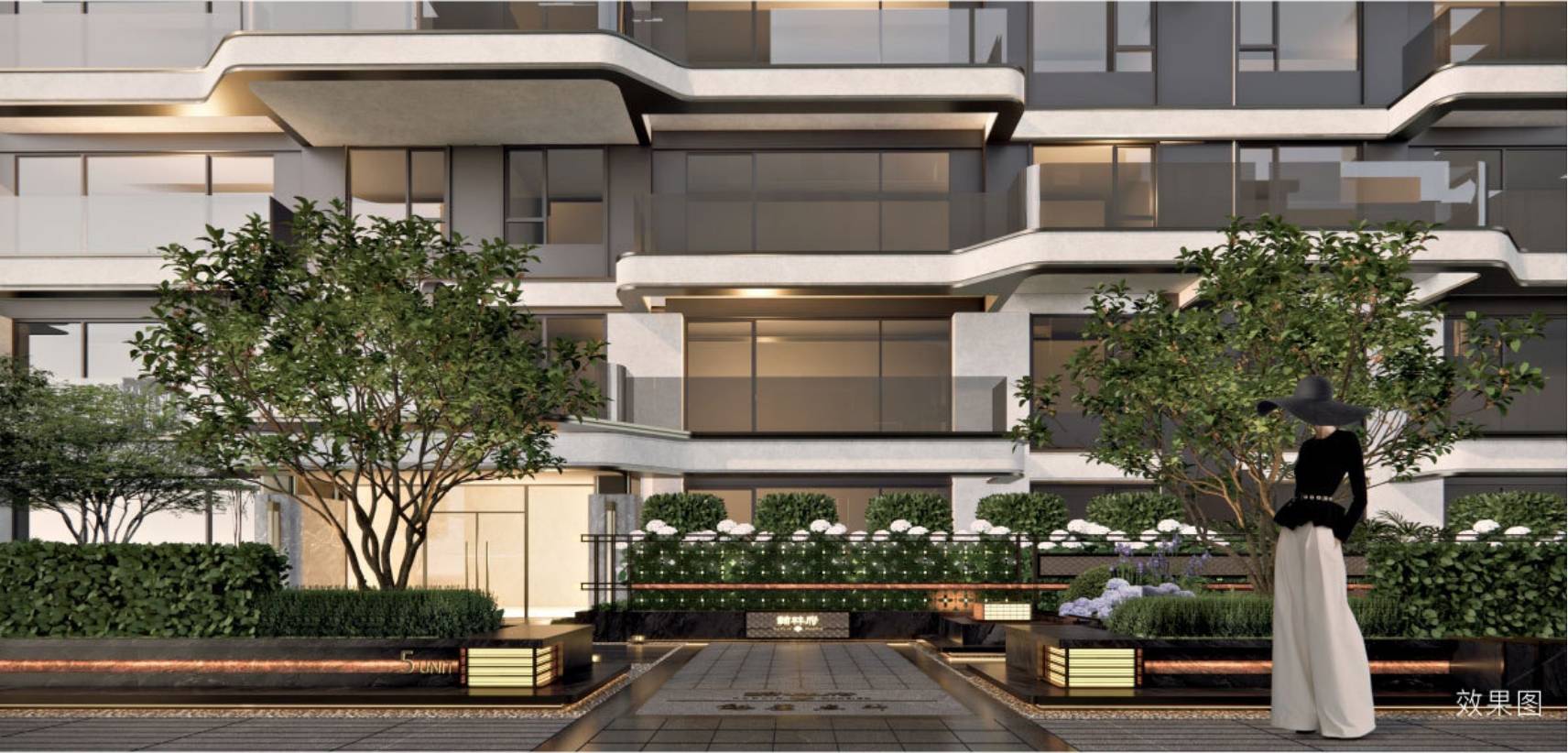以国际前沿建筑语汇,塑造时尚隽永的公建化美学立面,立面形制取意“翰林学士帽”,配建low-e中空玻璃窗幕+金属铝板+白色真石漆,轻盈、通透,演绎现代东方美学的艺术坐标。