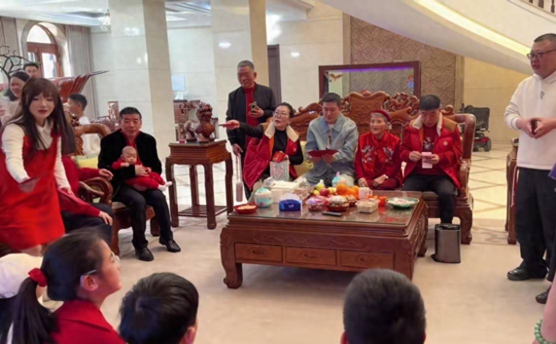 这套别墅大得发空,挑高很高,红木椅子一摆,立刻像祠堂里开年会。平时空旷得能听回音,大年初二一下子塞进上百人,拖家带口,孩子跑来跑去,空气里都是橘子皮、糖果、瓜子味。
