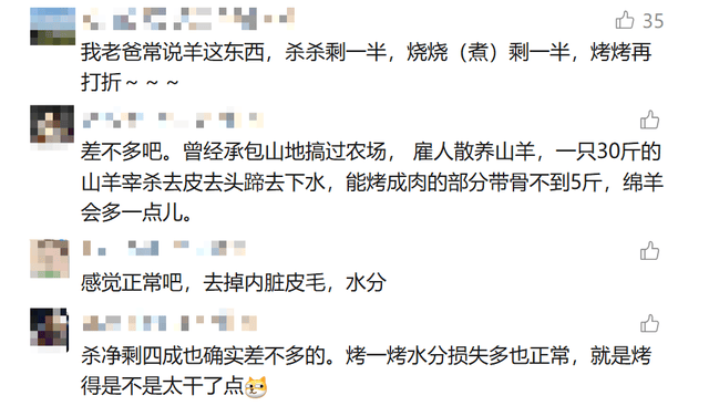 36斤羊烤完剩6.9斤是正常