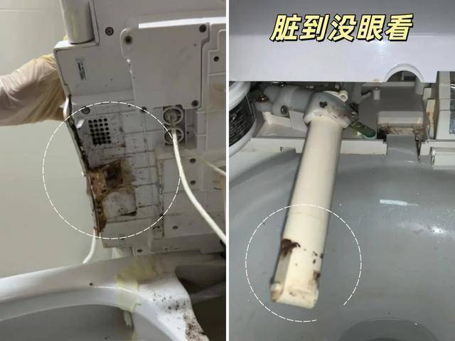 这种智能马桶在使用一段时间后,很多地方都满霉菌、水垢,甚至粪便污垢混合物。