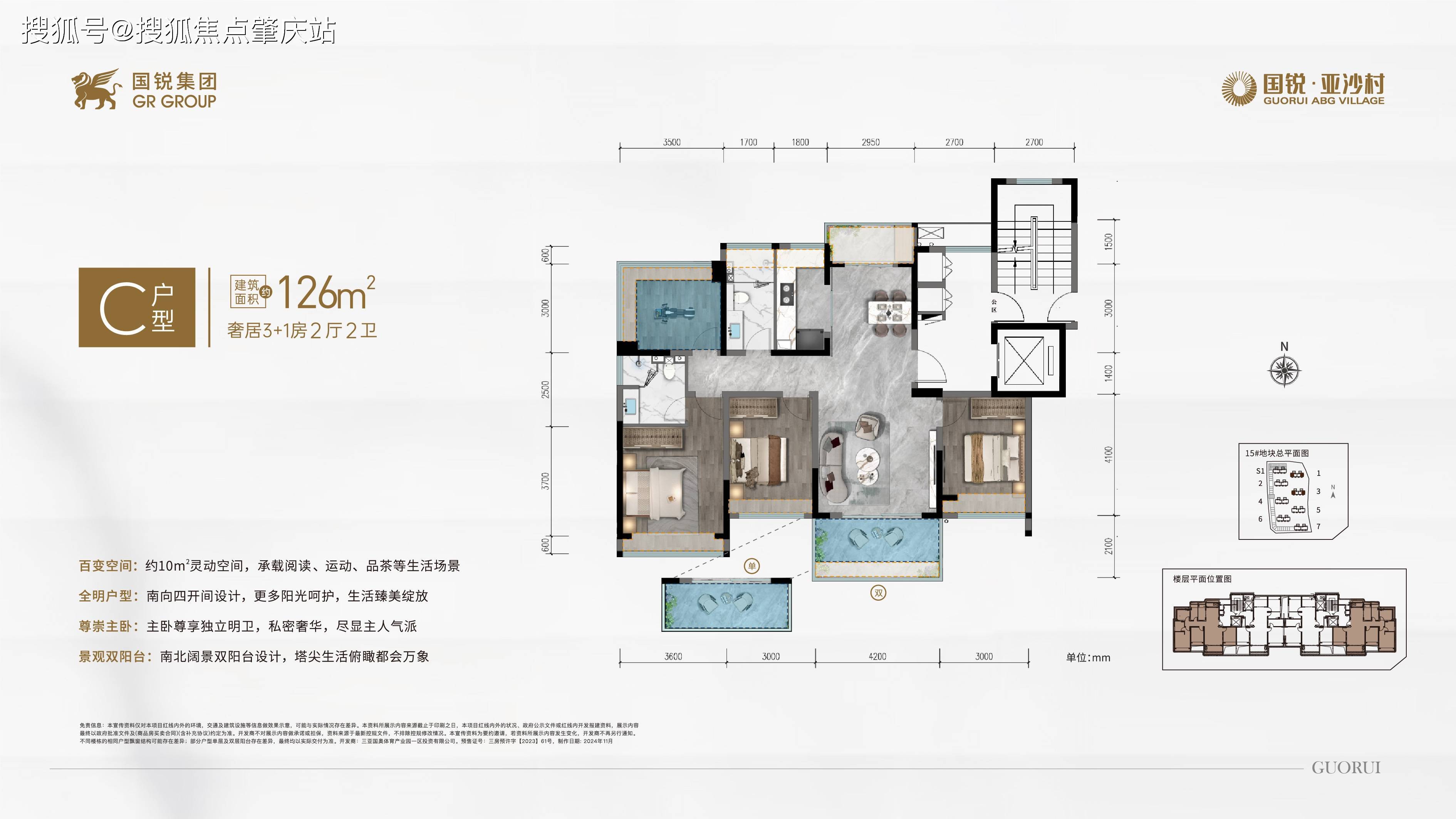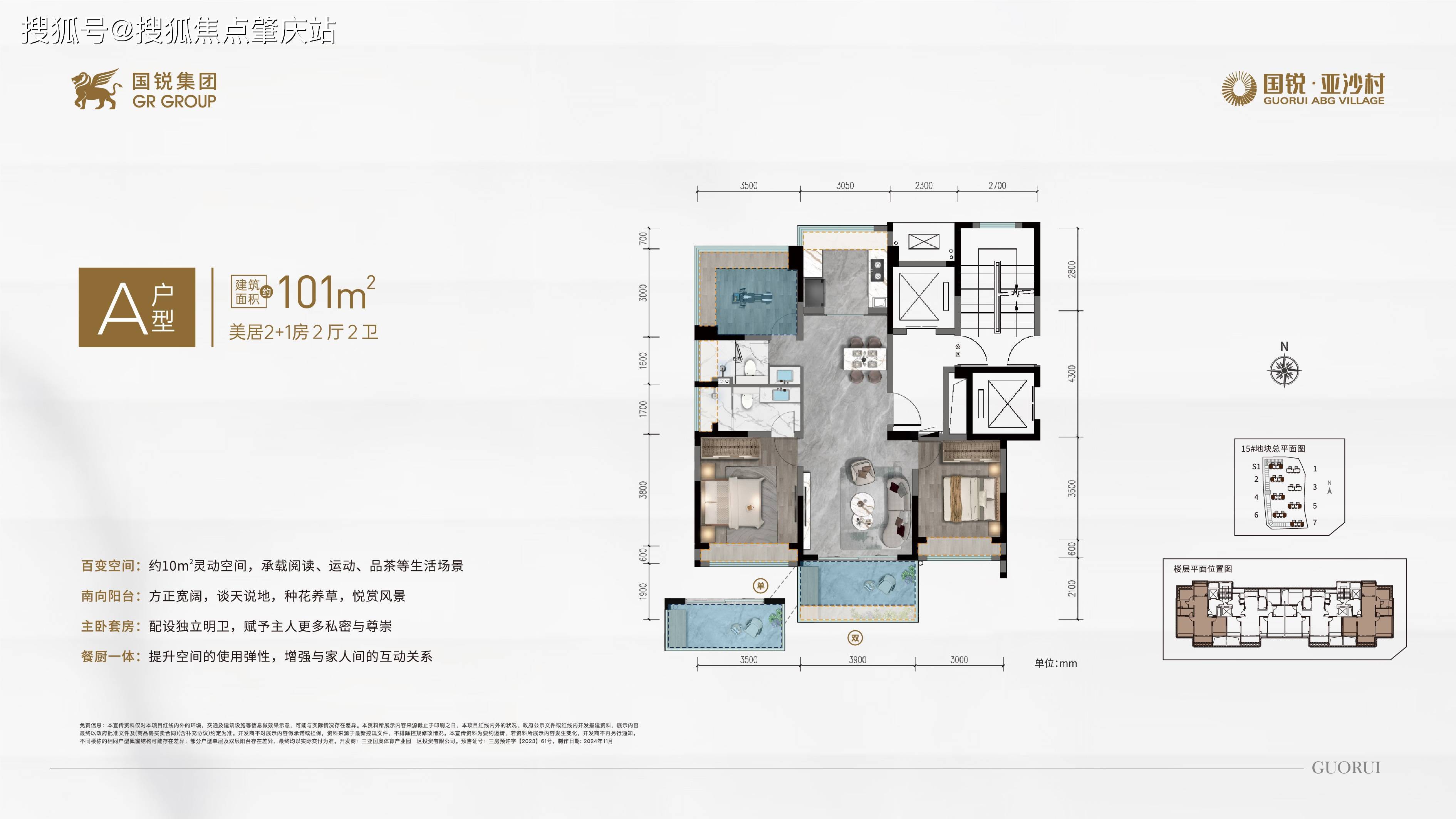 国锐·亚沙村位处三亚新城核芯区位,总建面约23万㎡,容积率约2.5,绿化率约40%,由18栋高层及约1.4万㎡block社区商业等组成。