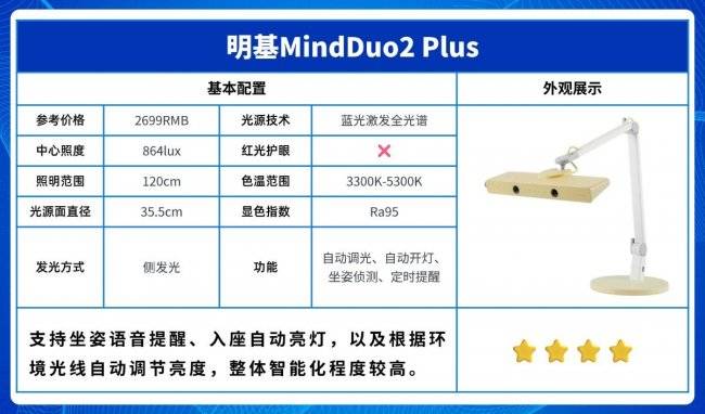 上榜理由:可以提醒坐姿,入座自动亮灯,还有自动按照环境光线调整亮度