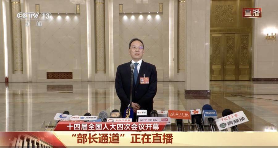 3月5日上午,十四届全国人大四次会议首场“部长通道”集中采访活动在人民大会堂北大厅举行,科技部部长阴和俊、工信部部长李乐成、国务院国资委主任张玉卓接受采访。