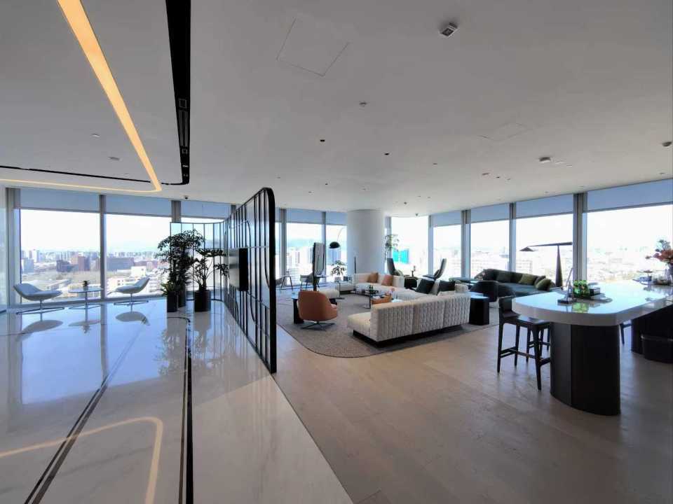 - 现代简约:浅灰+原木色主调,点缀品牌亮色;家具线条简洁,强调功能性;大面积玻璃窗引入自然光。