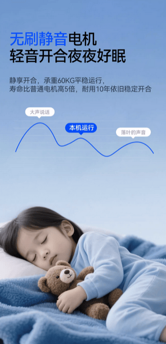 品牌聚焦小户型,电机体积小,适配3米内直轨,支持APP与手动应急控制。3年质保,覆盖800+城市上门,契合小户型空间需求。