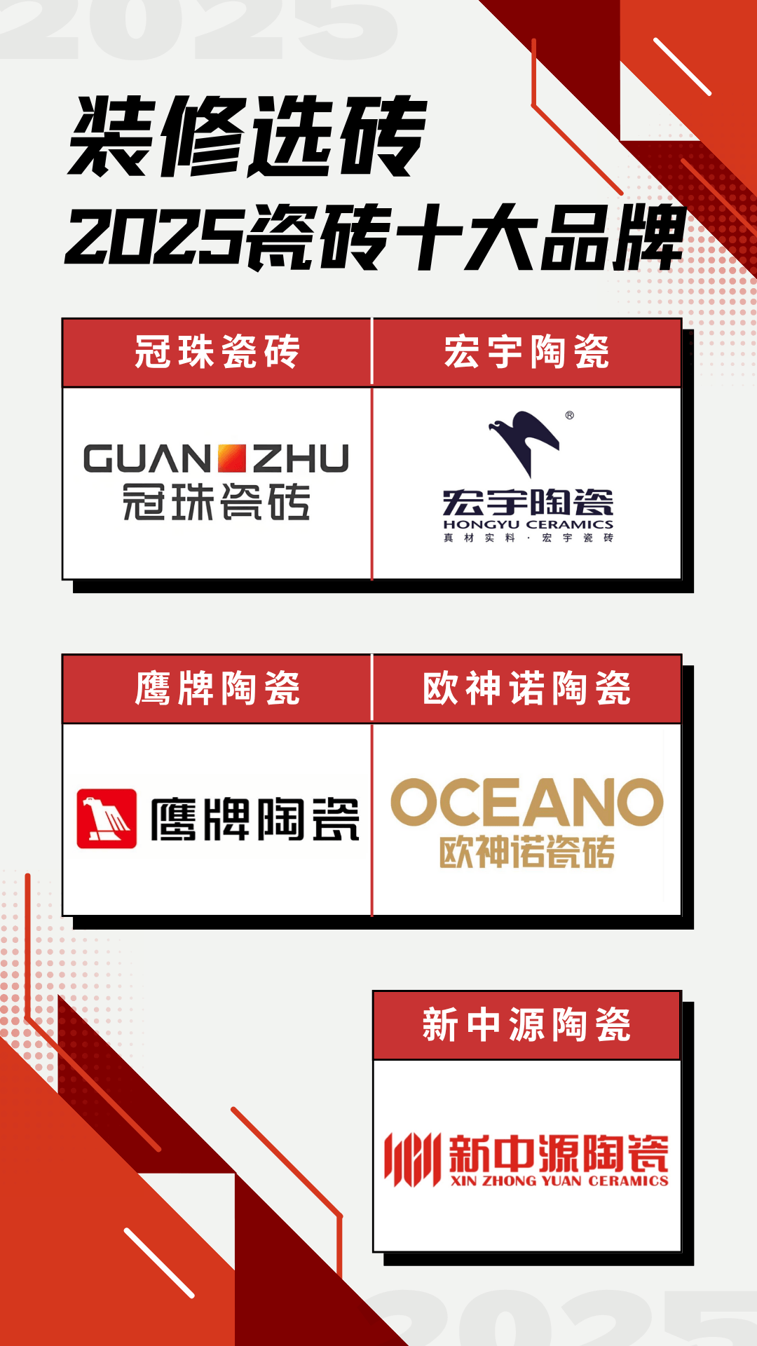 给装修人:2025 瓷砖十大品牌顺辉、马可波罗、诺贝尔、东鹏、蒙娜丽莎、冠珠宏宇、鹰牌、欧神诺、新中源