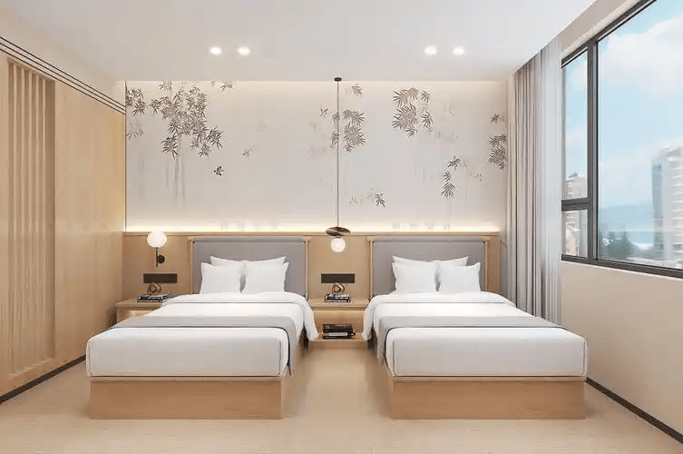 结合定位确定风格,商务酒店宜简洁大气(现代简约、新中式),度假酒店可融入地域文化或自然元素(东南亚风、田园风),网红酒店可采用潮流设计(工业风、ins 风)。