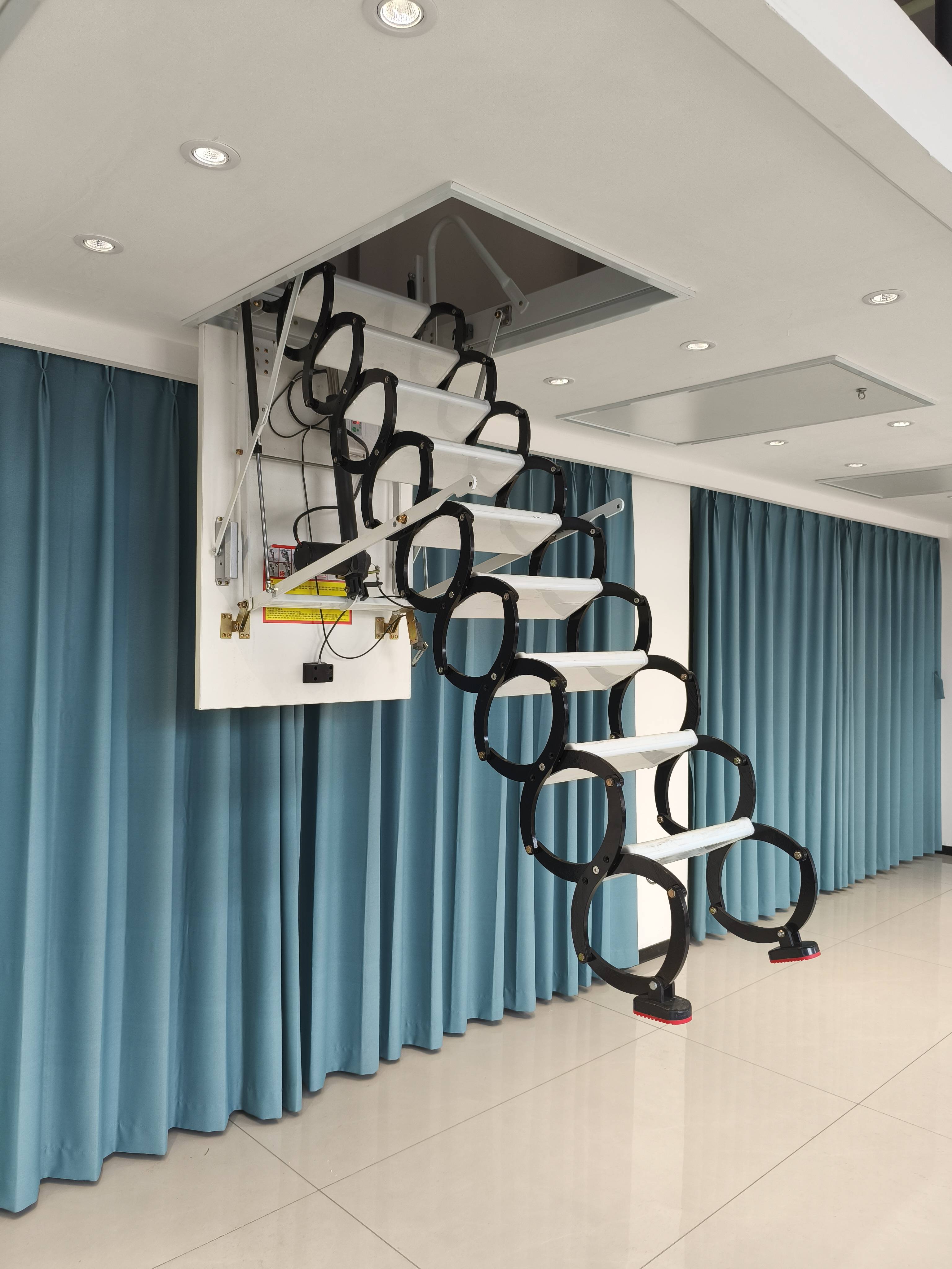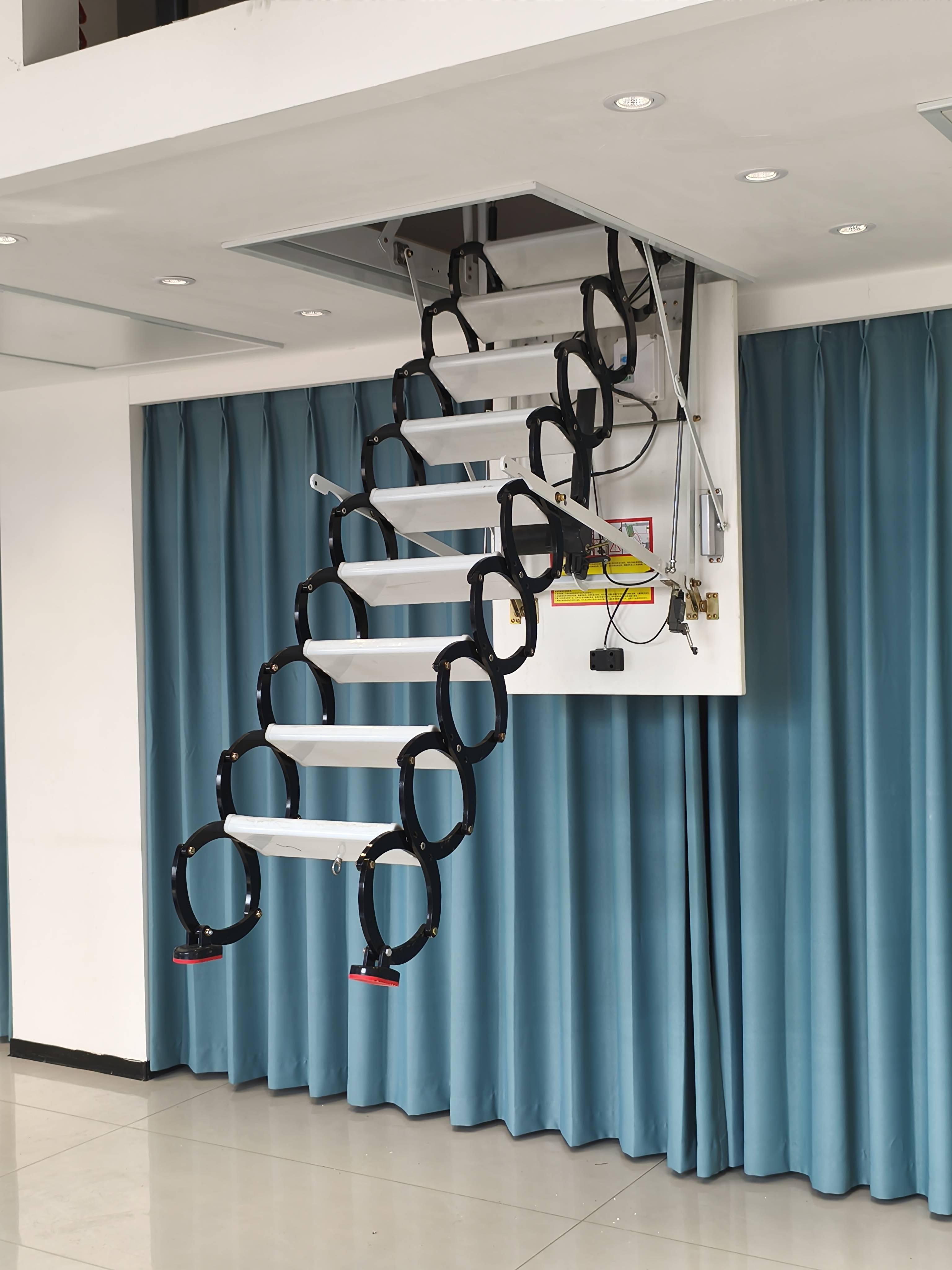 伸缩阁楼楼梯的行业优势与特点伸缩阁楼楼梯具有诸多显著的优势。传统的阁楼楼梯往往占用大量空间,对于小户型房屋来说,这无疑是一种空间的浪费。而伸缩阁楼楼梯通过独特的金属框架和机械结构,实现了伸展与收缩的功能。完全收缩后,它仅占用阁楼洞口约 1 平方米的空间,地面无固定结构,特别适合小户型或层高在 2 - 3.2 米的阁楼。这种设计不仅解决了阁楼楼梯占地空间大、小户型安装不方便的问题,还能够轻松打造链接阁楼上下楼的垂直空间。