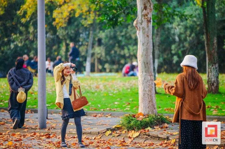 板仓工业园区的梧桐大道迎来了一年中的高光时刻,市民们纷纷走进这片金色世界。 记者 宋姿熠 摄