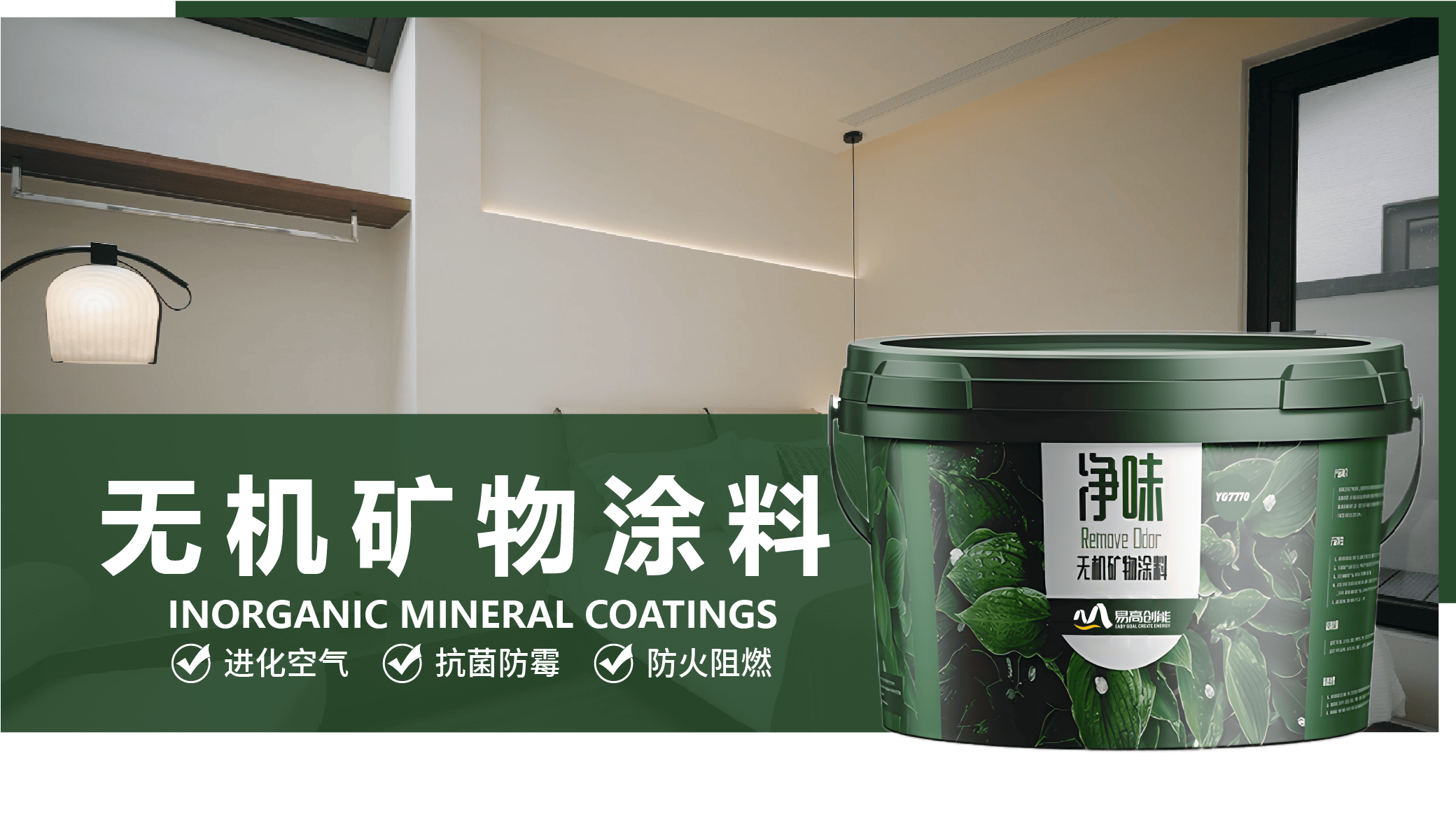 易高无机矿物涂料YG-7770,采用欧洲标准的A级环保材料,以纳米硅酸盐及硅溶胶为主要成膜物质,并添加具有分解有害有机挥发物的纳米二氧化钛,不含甲醛、挥发性有机物、重金属等有害物质;是一款符合环保要求的高科技换代产品,专为健康安全的生活环境,而研发的功能型液态全无机涂料。