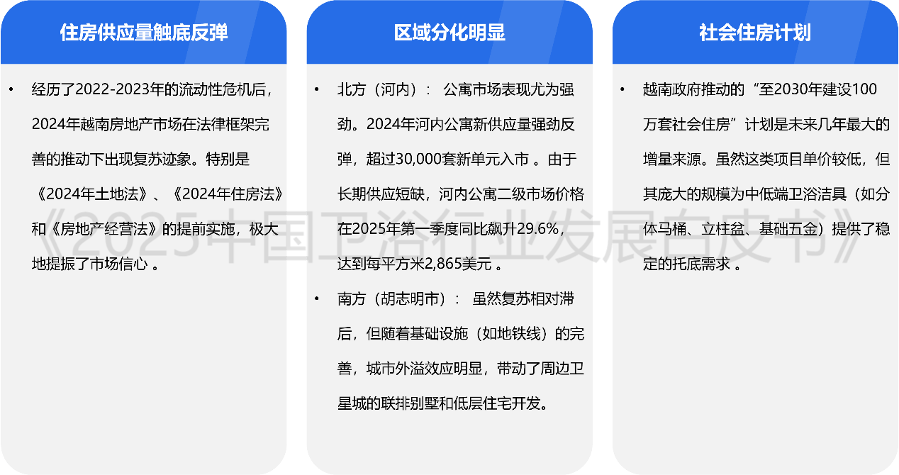 房地产行业是卫浴市场的直接上游,其荣枯直接决定了工程渠道(B2B)的销量。2023年至2024年,越南房地产市场经历了一场深刻的调整与重生。