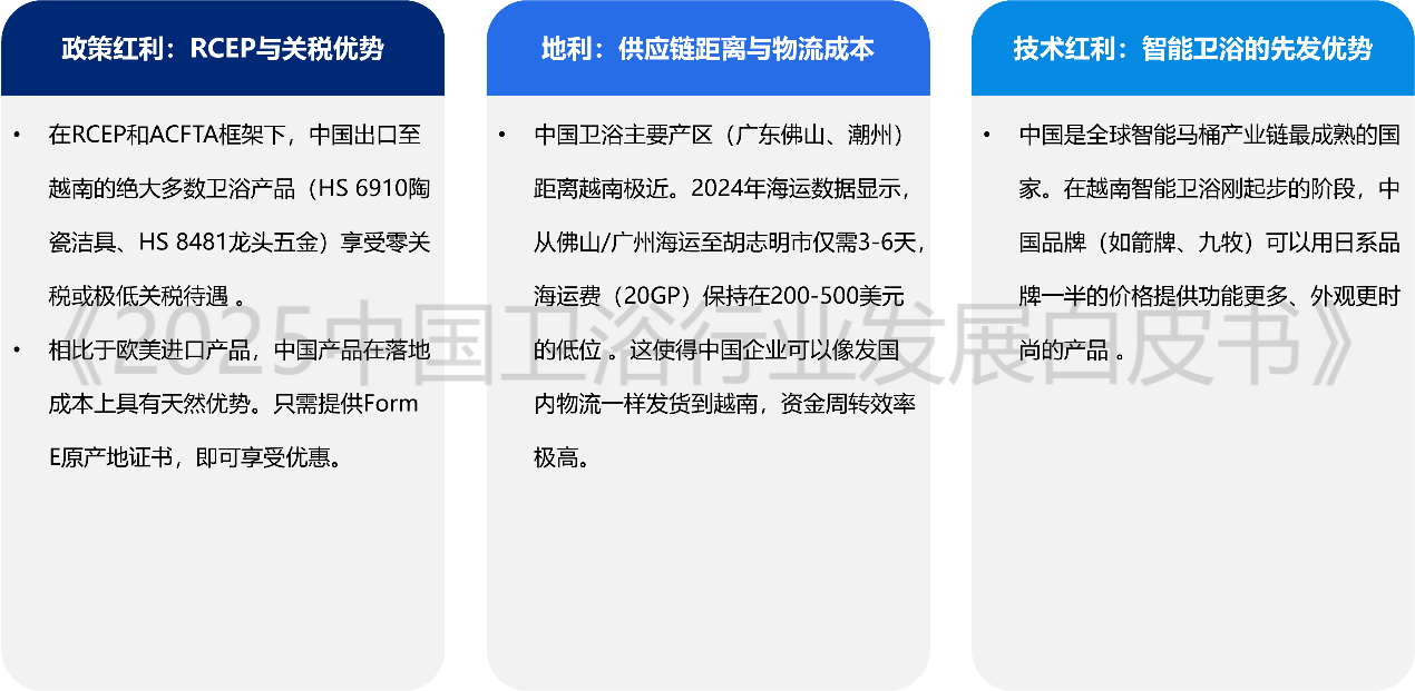 对于中国卫浴企业而言,越南不仅是地理上最近的海外市场,更是产业链延伸的最佳腹地。