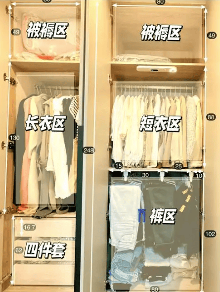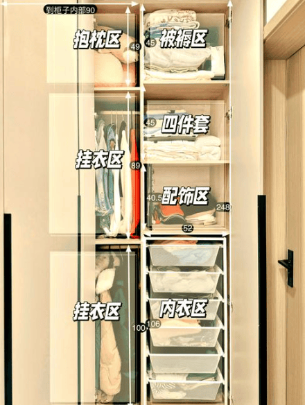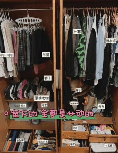 外套类:所有厚外套集中挂在衣柜一侧,按 “长短” 排序(长款在下、短款在上),方便查找;