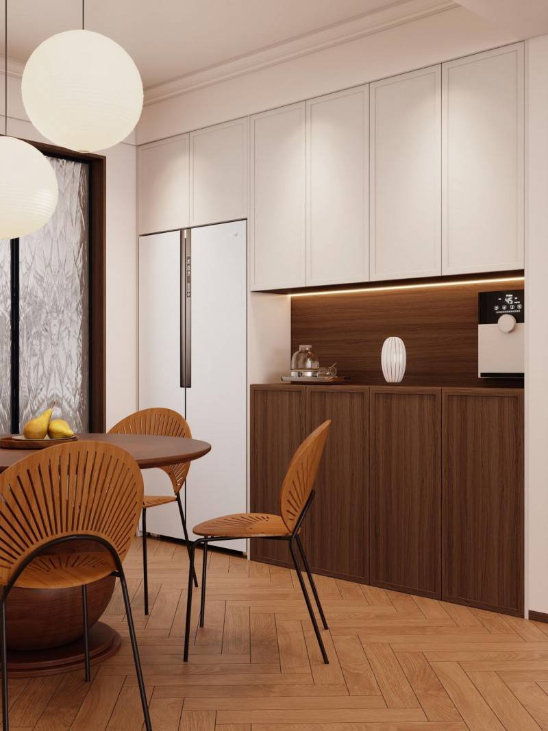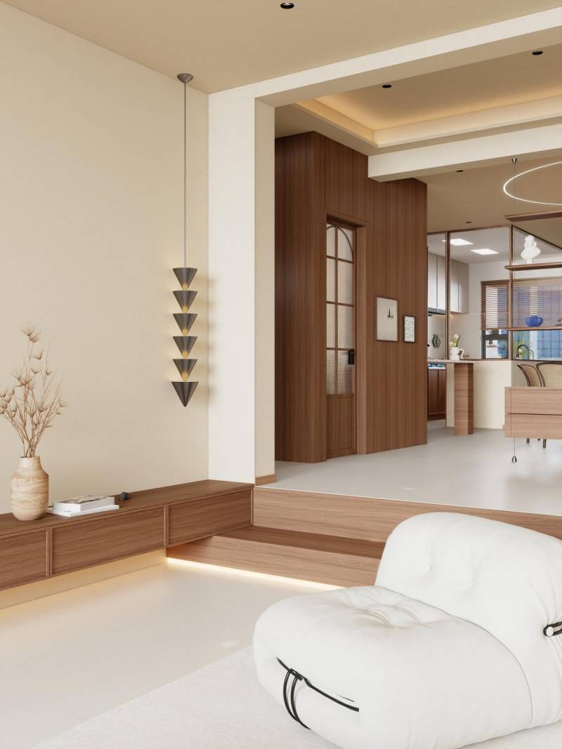 相较于纯粹的冷白,它巧妙融入一抹温润杏色。如果将其作为墙面、柜体等空间大面积基底,既能即刻为空间注入明亮感,又能勾勒出通透开阔的视觉体验。