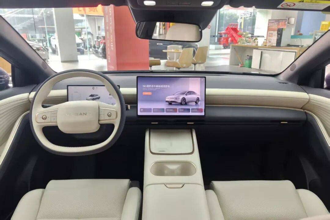 外观上,N6延续了与N7一样的家族V-motion风格,1.26宽高比让前脸更加舒展,封闭式格栅搭配可呼吸发光的NISSAN标识,造型很是前卫。此外,隐藏式门把手+溜背车身,不仅能降低风阻,也让新车看起来有些运动轿跑的感觉。