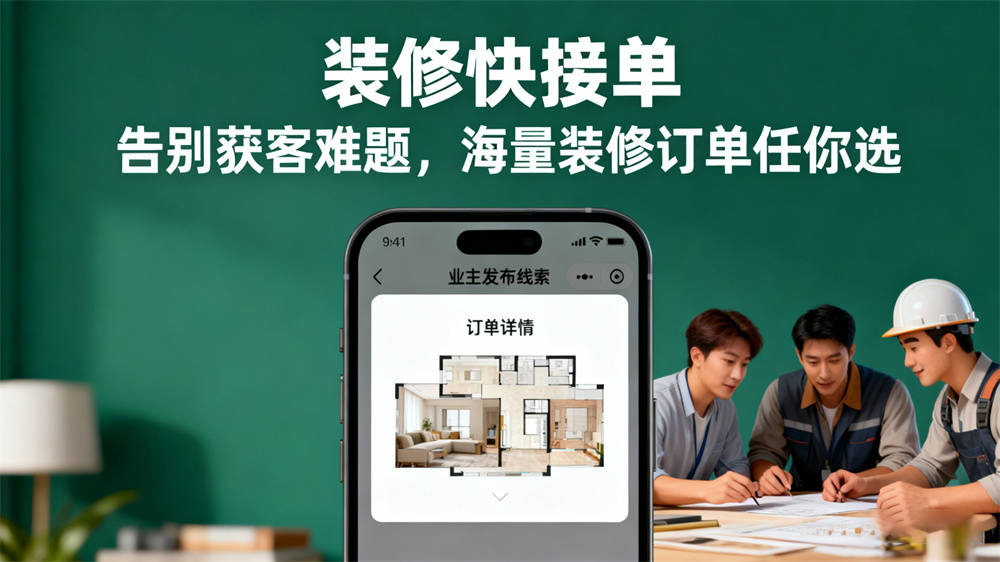 装修快接单 app 派单模式适配方案落地。方案中 “精准获客” 环节,装修公司营销通过平台筛选高意向客户后派单,不用手动梳理线索,落地简单,中小装企也能快速上手。