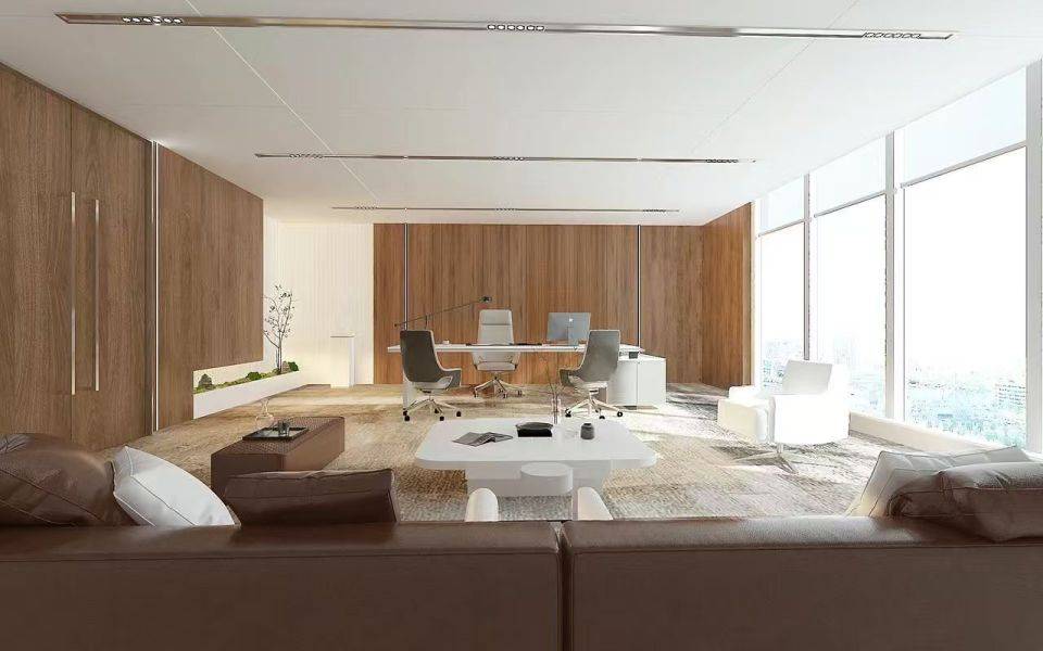 - 家具选择:选造型方正、稳固耐用的家具(实木、金属框架),避免易碎玻璃、尖锐边角(如办公桌、沙发边角做圆角处理),领导办公室家具尺寸按职级适配,不超标、不奢华。