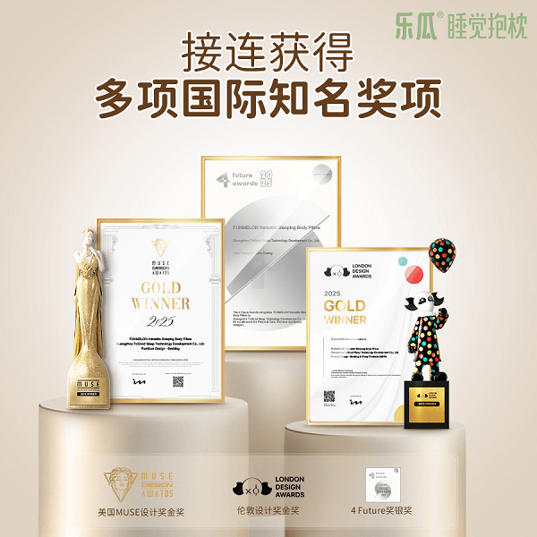 在专业认可方面,2025年FUNMELON乐瓜接连斩获美国MUSE设计奖金奖、4 Future Awards银奖、伦敦设计奖金奖等多项国际知名奖项;同时荣获iiMedia Research(艾媒咨询)授予的2024年度销量第一、中国睡觉抱枕开创者等荣誉称号。品牌累计斩获超59项全球专利,覆盖人体工学、材质融合、结构创新等多个领域,进一步夯实了其“呵护健康睡姿专家”的专业品牌形象。