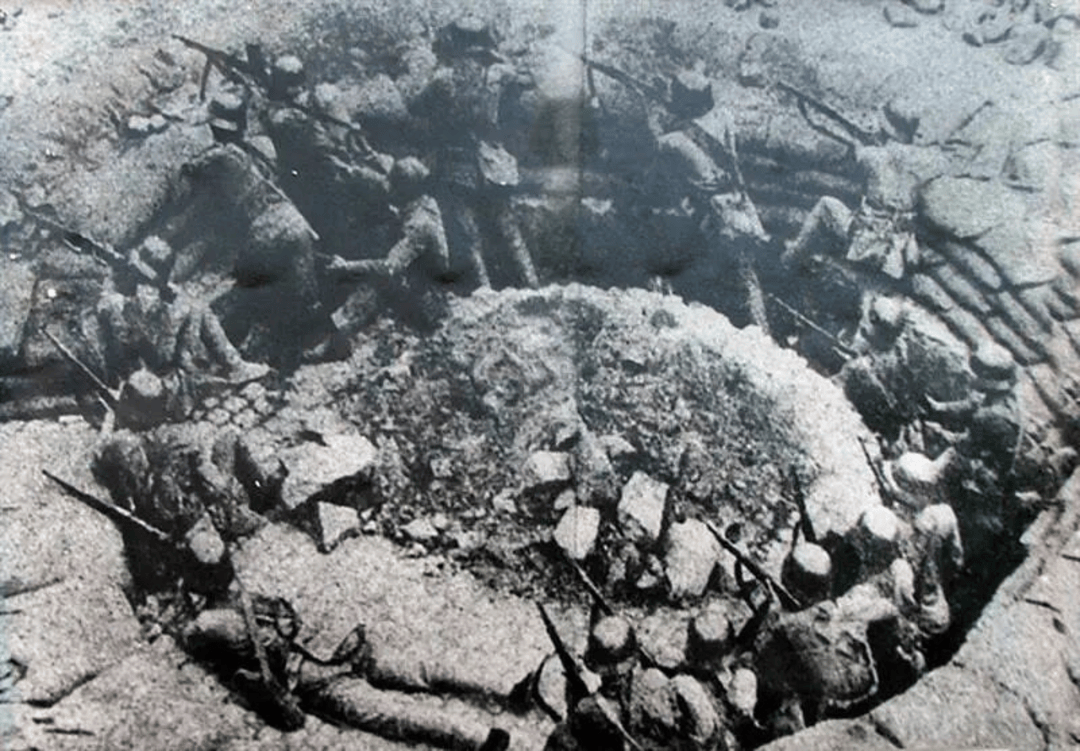 1937年8月13日至11月12日,中日军队进行淞沪会战。这是中国军队88师在上海闸北的环形工事里同日军巷战。新华社发