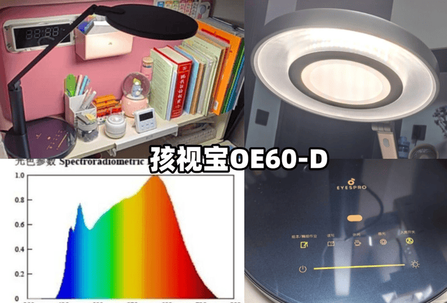 台灯哪个牌子的比较好保护视力的?孩视宝OE60-D主打的是宽广的照明范围,其面+环的微导光设计,照明覆盖很广。它的银色外观比较简洁,底座放置也很稳固。显色指数Ra95,色彩表现还不错。光线分布均匀,但柔和度稍弱,灯头直视会有一点刺眼。另外,它的灯臂调节角度有限,想要照亮较高位置可能需要垫高底座。操作上触控分区明确,调光调温分开设计挺方便。整体表现中规中矩,适合多人共用或大桌面场景。