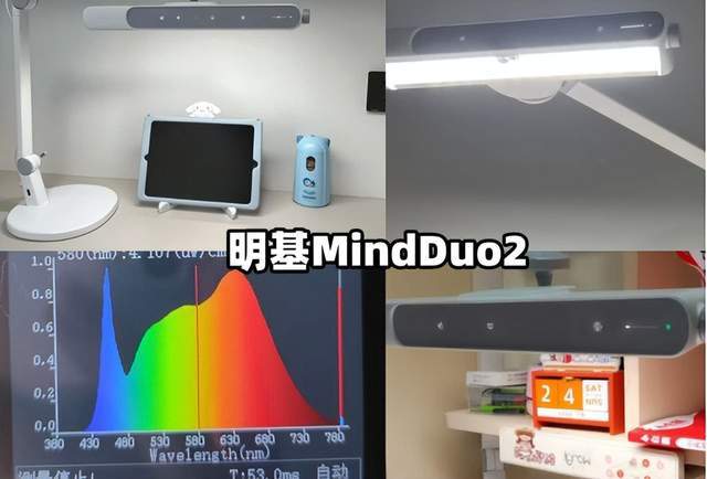 台灯哪个牌子的比较好保护视力的?明基MindDuo2采用内嵌导光板与前屋檐遮光结构,搭配遮光结构,可以减少直射眩光,光线分布比较均匀。支持3300K-5300K色温调节,有智能感光功能,能根据环境光微调亮度。灯臂是金属的,四轴联动调节,适配不同坐姿。还带人体感应开灯,操作挺方便。灯头覆盖范围尚可,能满足常规书桌照明需求,不过没有搭载高端光谱优化技术,实测蓝光峰值1.0相对偏高。适合预算充足,非常看重品牌和智能交互体验的家庭。