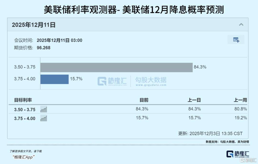 货币政策和经济方面,市场对美联储在12月降息的预期已基本锚定。