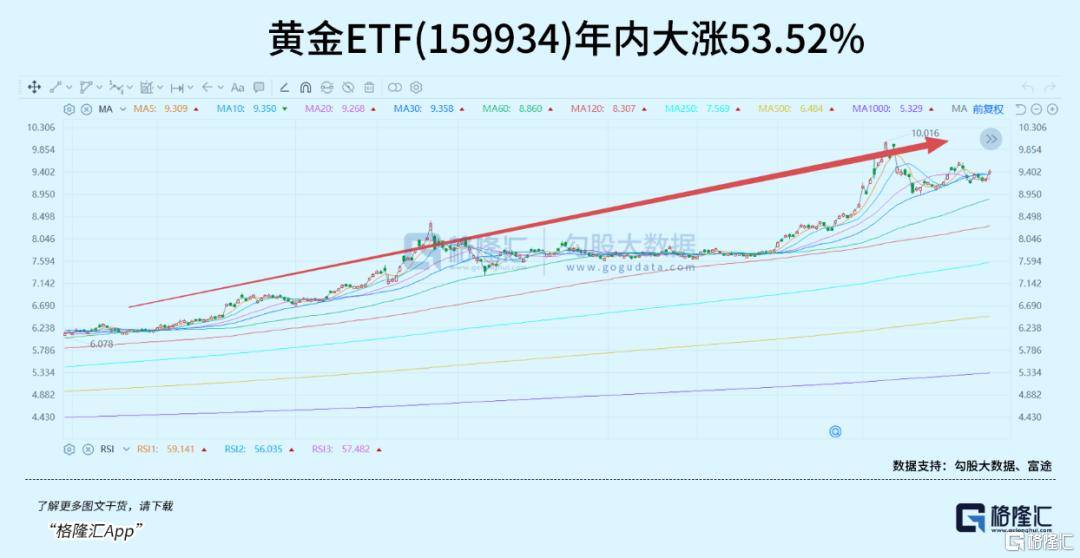 其中,黄金ETF(159934)成为市场热门ETF,年内涨幅53.52%,资金净流入额达126.4亿元。