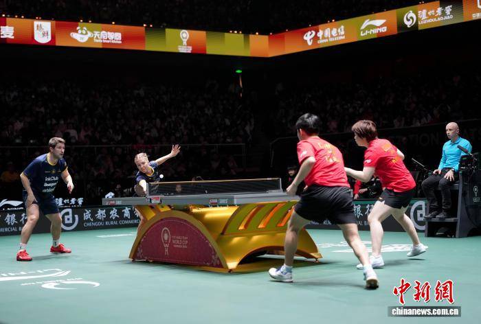12月6日,四川成都,中国队(右)与瑞典队在混合双打比赛中。当日,2025年成都国际乒联混合团体世界杯第二阶段比赛中,中国队以8比4胜瑞典队。 中新社记者 安源 摄