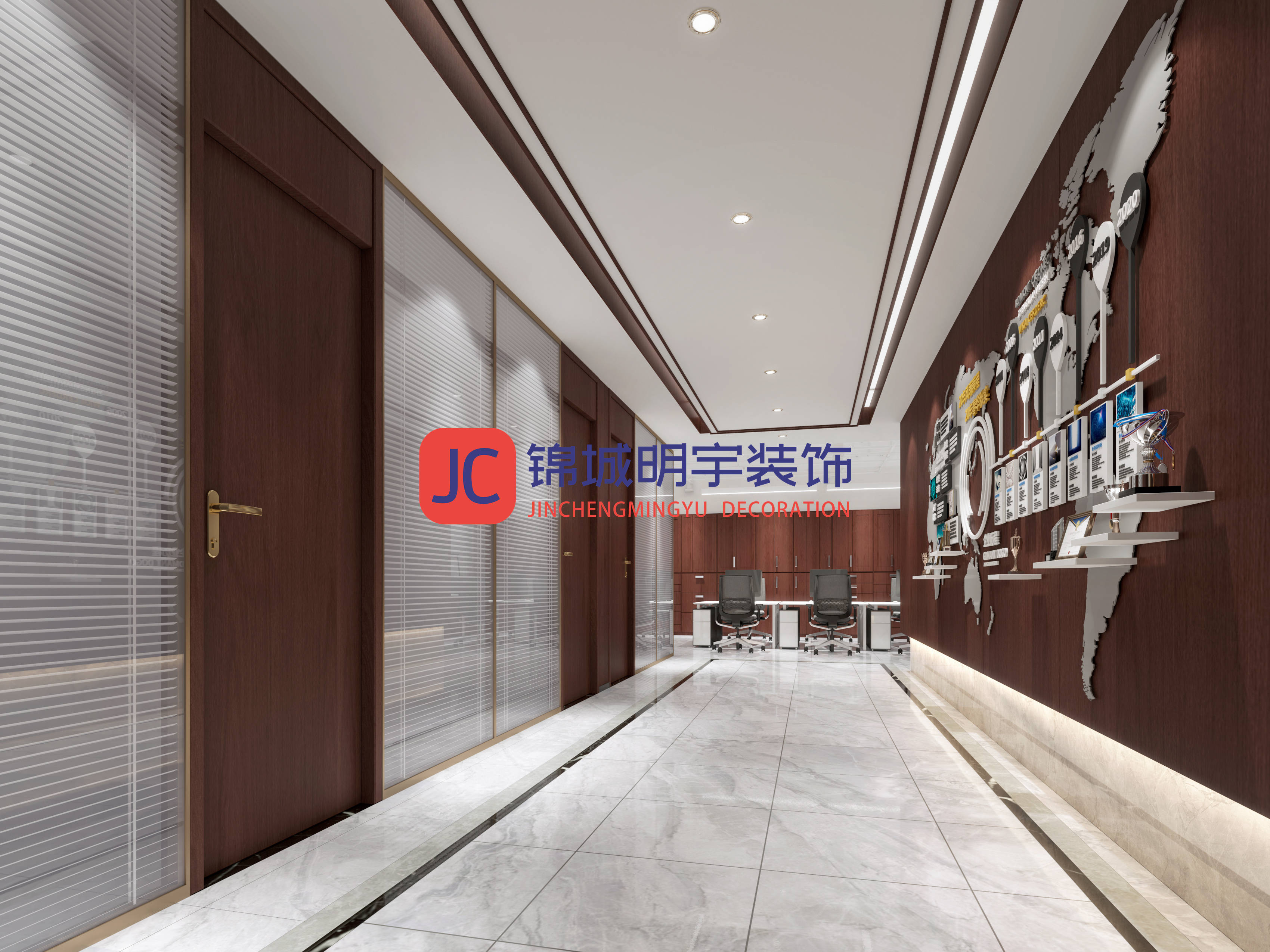 锦城明宇装饰通过科学的规划、独特的风格设计和贴心的细节处理,让通道不再只是简单的通行空间,而是成为了提升办公效率、展现企业形象、营造舒适氛围的重要组成部分,为业主单位打造出了高品质的办公环境。