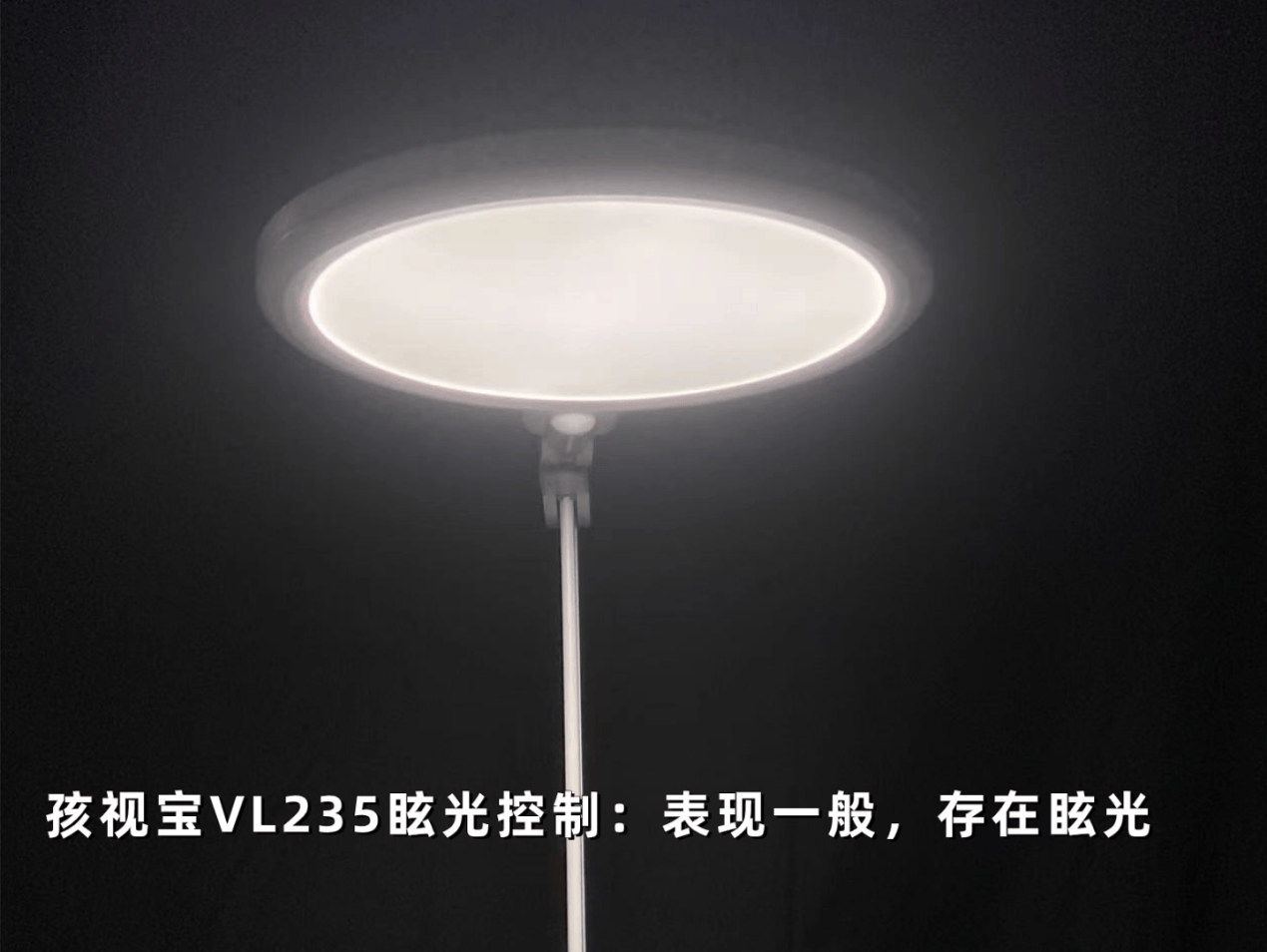 孩视宝VL235采用的是直发光设计,整体的光线较为集中,在实际使用当中它灯下区域亮度会偏高一点,所以它是存在比较明显的眩光问题,建议使用时注意调整角度,避免直视灯头。