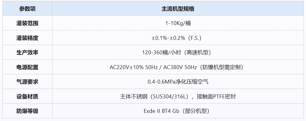 - 称重式/液位式灌装:采用传感器反馈控制,误差可控制在±0.1%-0.2% F.S.。