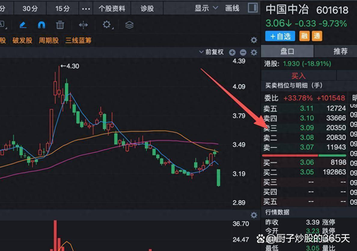 这只股票叫中国中冶,名字前面顶着“中国”俩字,是根正苗红的超级中字头。 它没有像往常一样平静波动,而是低开后直线下坠,盘中被无数卖单死死地按在了跌停板上。