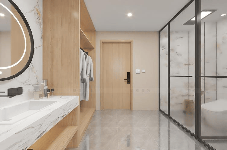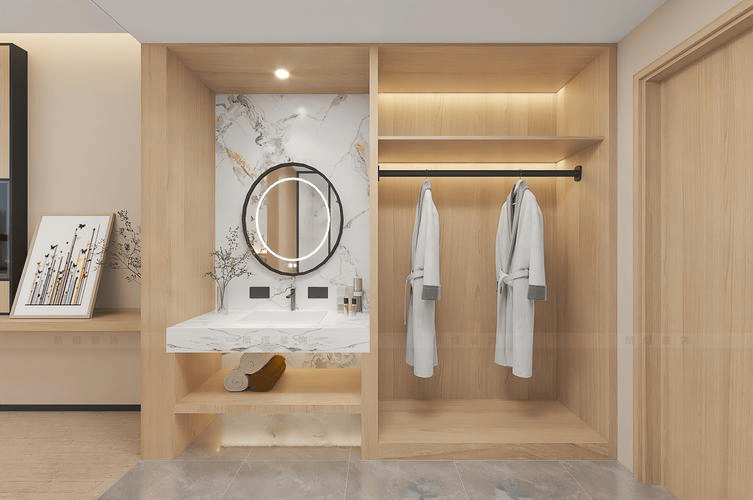 - 家具边角需做圆角处理,防止磕碰;衣柜需足够容纳行李和衣物,内置照明灯更显人性化。