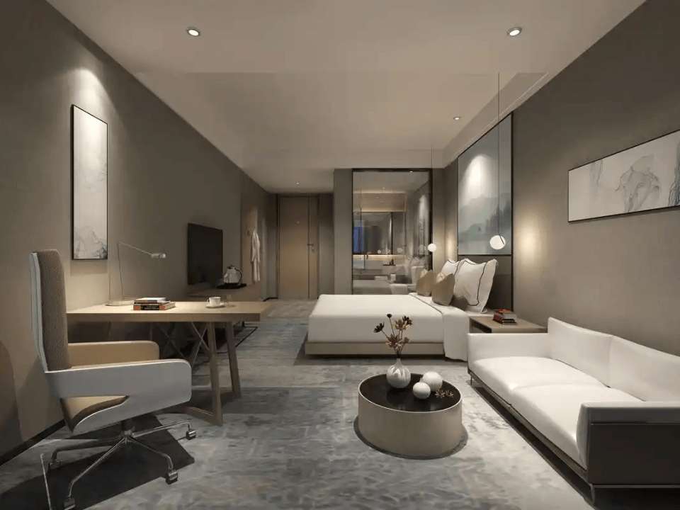 - 装修材料需选用E1级及以上环保板材,涂料、胶粘剂需符合国家室内空气质量标准,避免甲醛、苯等有害物质超标,影响客人健康和酒店口碑。