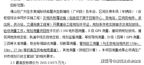 公告表明,三大招标项目仅限广州段,其为1个标段,具体建设规模起于广佛边界,止于新塘站。