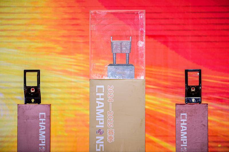 这是12月9日在出征仪式上拍摄的象征CBA总冠军的“至尊鼎”与总冠军戒指。新华社记者 江汉 摄