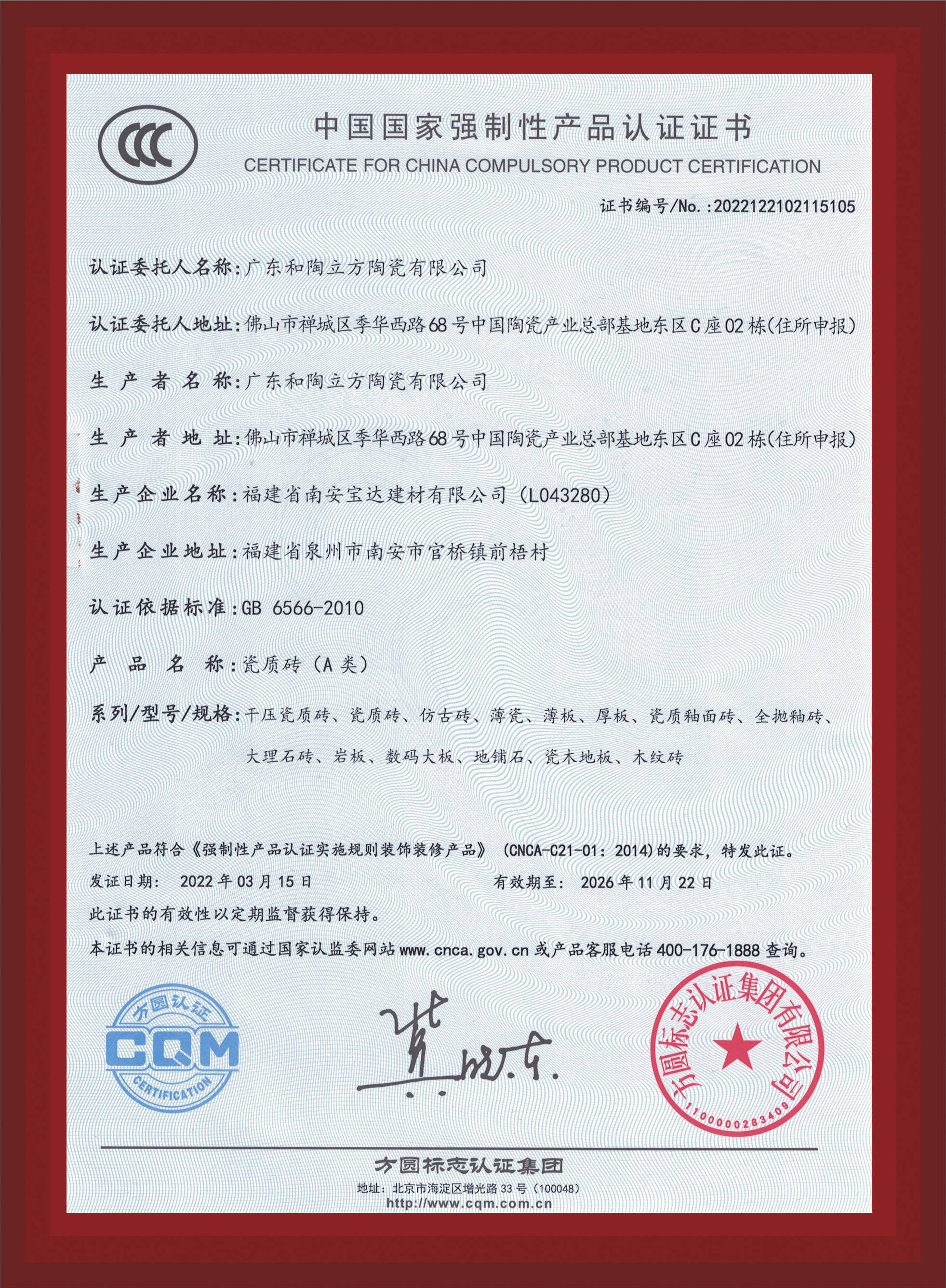 高质量保障长久使用市场上普通的外墙砖常常存在色差、破损、脱落、不耐污容易老化等问题,而专业定制的时尚别墅瓷砖则很好地解决了这些痛点。以广东和陶家居股份有限公司的产品为例,他们拥有国家授权的超耐污发明专利,耐污抗老化性能比普通产品高出一倍,达到五级以上;双钩防脱落发明专利,更聚焦瓷砖上墙的垂直承力性能,单片300*600毫米墙砖承力大于500公斤,铺贴0空泡,提升粘合材料容积30%。这些技术创新确保了瓷砖的高质量和长久耐用性。