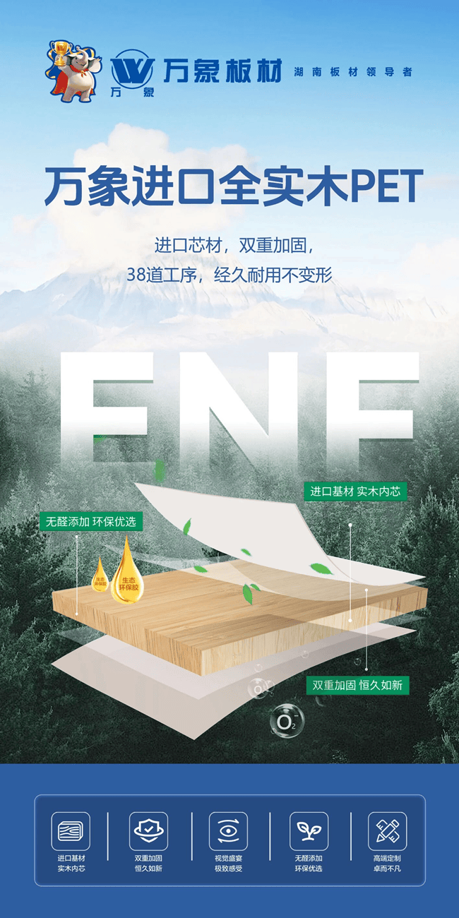 万象板材始终以自然为源、匠心为尺,将优质原材与精湛工艺深度融合,构建起覆盖森氧康养、空气净化、抗菌防霉、高端定制的全品类矩阵。从环保标准到性能打磨,每一处细节都彰显对健康家居的坚守,全面适配刚需与高端定制的多元诉求。丰富品类与严苛品控,让万象成为全屋定制的可靠之选,为消费者构筑兼具健康、舒适与质感的理想家居空间。