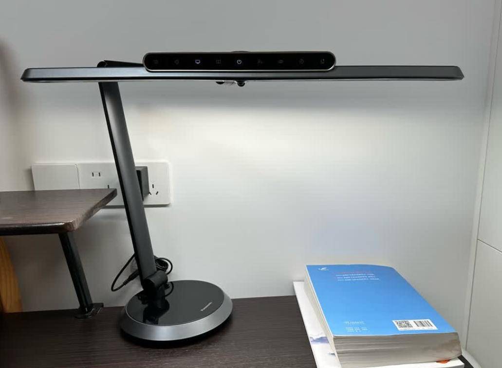 松下致准护眼台灯采用加宽矩形柔光面板,配合扩散透镜,使光线分布均匀,可覆盖大约2米的桌面区域,比较适合较大书桌使用。灯体采用铝合金材质,底座稳固性好,支持三轴调节和多档色温切换。不过灯头与灯臂之间仅为单轴连接,不支持左右旋转,部分角度调节略显局限,而且长期频繁调节可能会感觉关节略松。