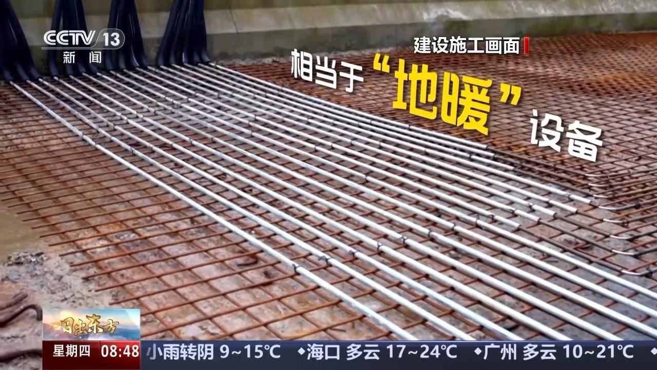 总台记者 赵雄:高速公路建设方创新采用“环路热管融雪系统”,这个技术就好比是给道路铺设了先进的“地暖”设备。这也是我国西南地区首次在高速公路中采用这样的技术。