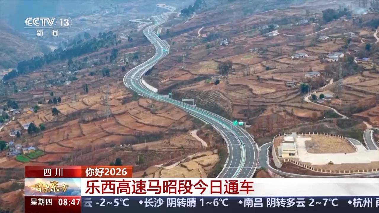 总台记者 赵雄:经过5年的施工建设,2026年1月1日零点整,乐西高速公路马昭段正式建成通车。从乐山到西昌的高速公路总长度约320公里,其中马昭段全长152公里,先后经过乐山的马边县以及凉山州的雷波县、美姑县和昭觉县,结束了三个县城不通高速的历史,这也是四川第一条深入大小凉山腹地的快速通道。