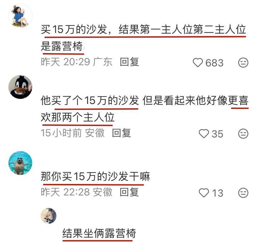 如果说电视柜让网友目瞪口呆,那沙发价格曝光后,直接让人怀疑人生。