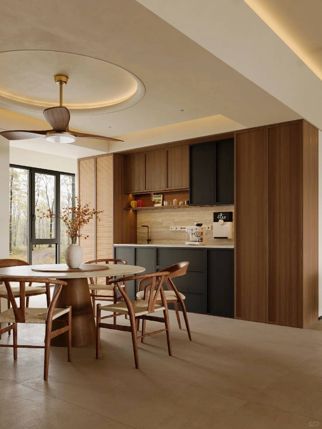 日式原木风注重空间的流动性与实用性。推荐采用障子门替代传统隔断,保证采光通透。地台设计可实现会客、休憩、收纳多功能合一,下方设置电动升降桌更显便捷。卫浴间做三分离设计,采用珐琅板墙面防潮易清洁。厨房选用带米箱、调味篮的整体橱柜,灶台区建议使用不锈钢台面。收纳可借鉴"三分露七分藏"原则,开放式层板展示收藏品,藤编筐收纳零散物品。