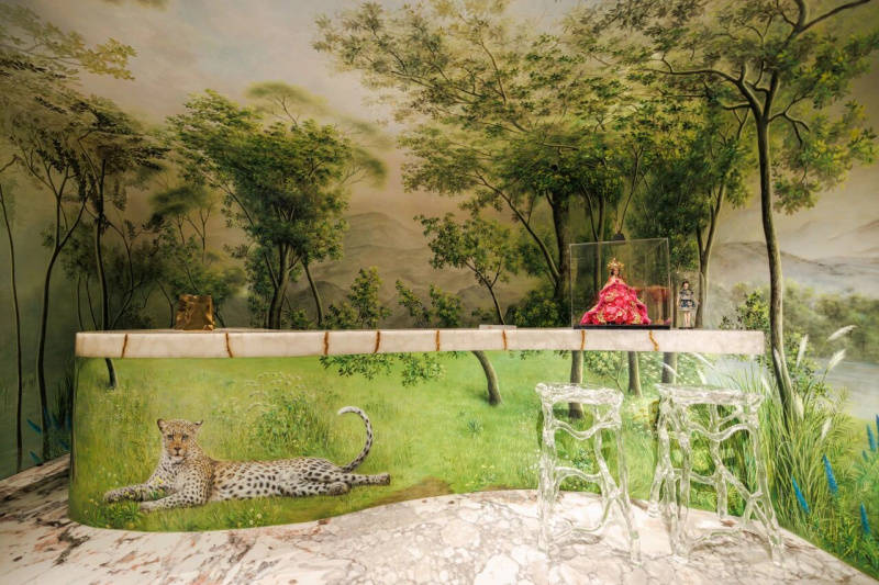 冠珠华珍岩板冰裂白,就是郭培老师给工匠们选择的“灵感伙伴”。它自然开片的纹理疏密讲究,如冰层开裂,又如绣线于面料上自然散开,大面积应用震撼灵动,被参观的媒体评价为:是见过的至美工作室!
