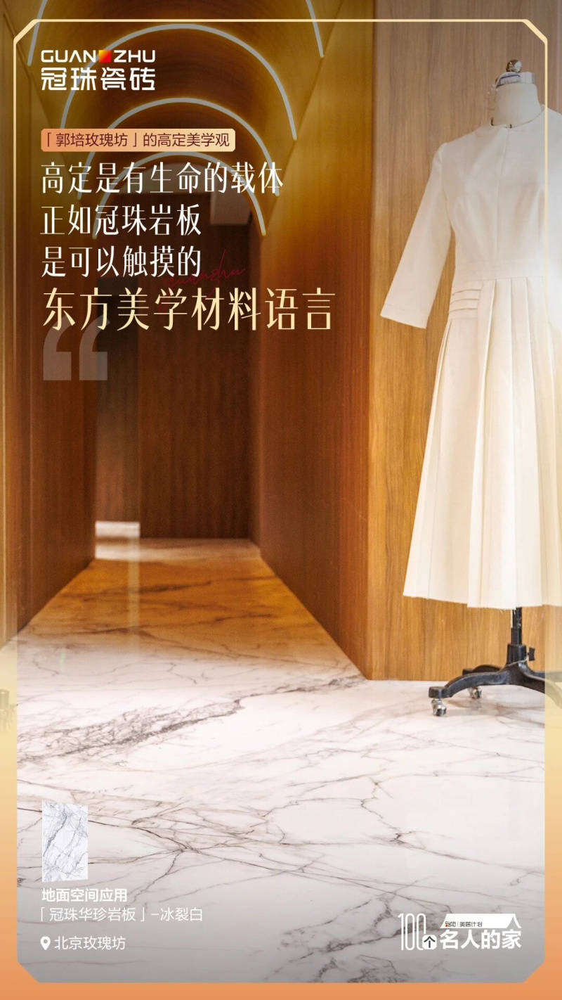 美从来不是放在博物馆里让人仰望的,是融进生活里、贯穿生命每一处的生动实践。 从上海郭培高定会馆,冠珠 × 郭培「冠珠华脉」高定展,再到北京玫瑰坊,郭培老师的服装艺术与冠珠瓷砖的空间美学持续碰撞,都是在回答一个问题:东方美学不是过去的东西,不是只能怀念的老物件。它正被我们一针一线地绣进今天,一砖一瓦地丰盈当下,未来也将共同探索东方美学的更多表达形式,一起向世界传递大美中国的理念,让更多人通过空间与服饰,读懂中国高定的匠心与文化。